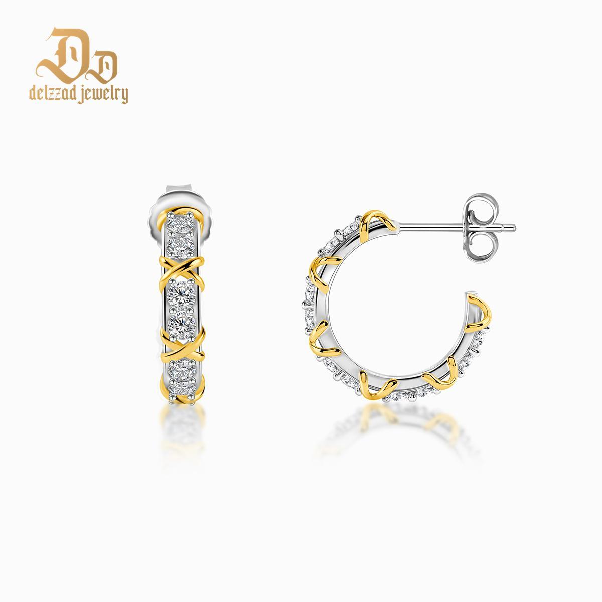 Delzzad Round Dipped Two-Tone Crossover Hoop Earrings S925 & D Color VVS Synthetic Moissanite